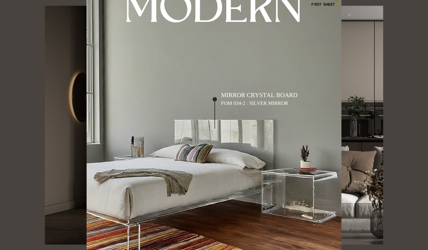 สัมผัสความหรูหราเหนือระดับกับ MIRROR CRYSTAL BOARD : FOM 034-2 SILVER MIRROR วัสดุตกแต่งสุดล้ำที่ผสมผสานความงามของกระจกเงาเข้ากับความแข็งแรงทนทานของคริสตัลบอร์ด เปลี่ยนทุกพื้นที่ให้เป็นศิลปะแห่งแสงและเงาสะท้อน
