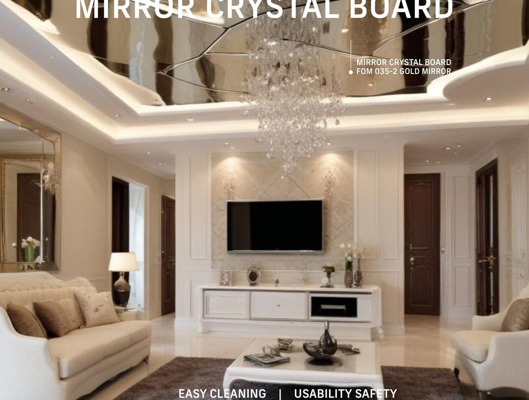 เปลี่ยนห้องธรรมดาให้กลายเป็นห้องสุดหรู ✨ ด้วยแผ่นคริสตัลบอร์ด รุ่น FOM 035-2 GOLD MIRROR สร้างบรรยากาศที่หรูหรา โอ่โถง และทันสมัย ให้ห้องรับแขกของคุณดูมีมิติมากขึ้น